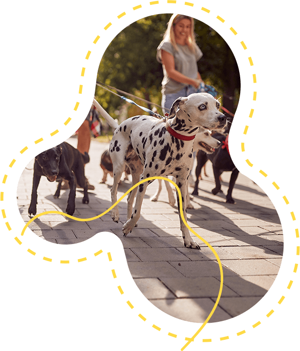It involves taking dogs for walks on a leash, or designated dog-friendly areas.